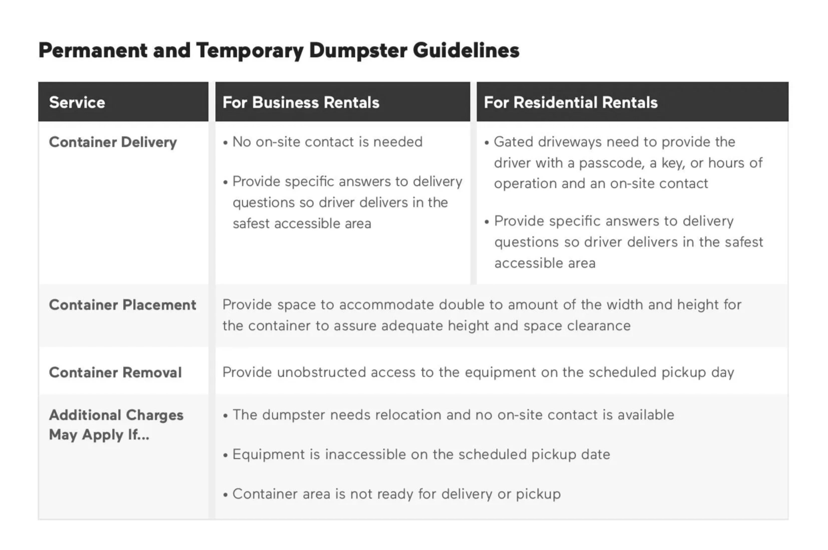 Depending on where you're located and what size dumpster you need, the specific guidelines and list of unacceptable materials may vary.